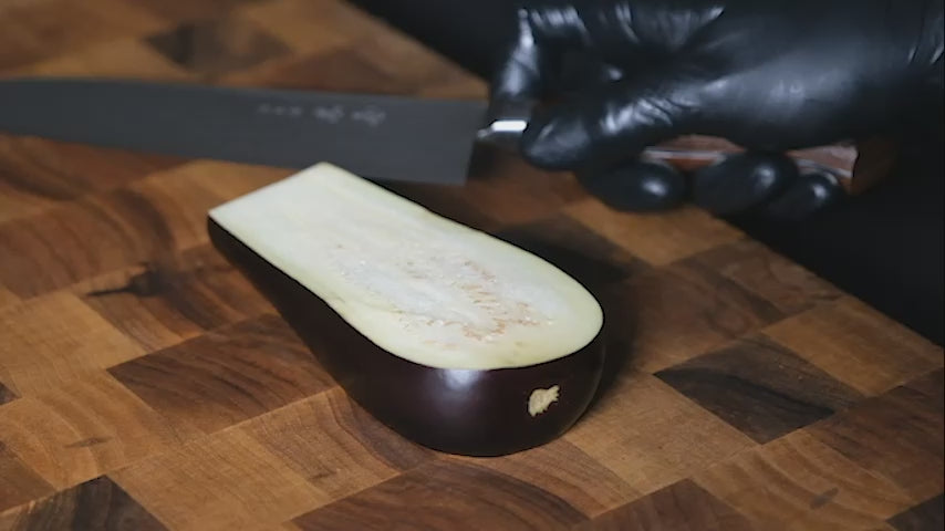 - Das Messer hat eine sehr scharfe Schneide. Bitte verwende ein Schneidebrett aus Naturholz wie beispielweise Bambus, Kirsche oder Eiche.