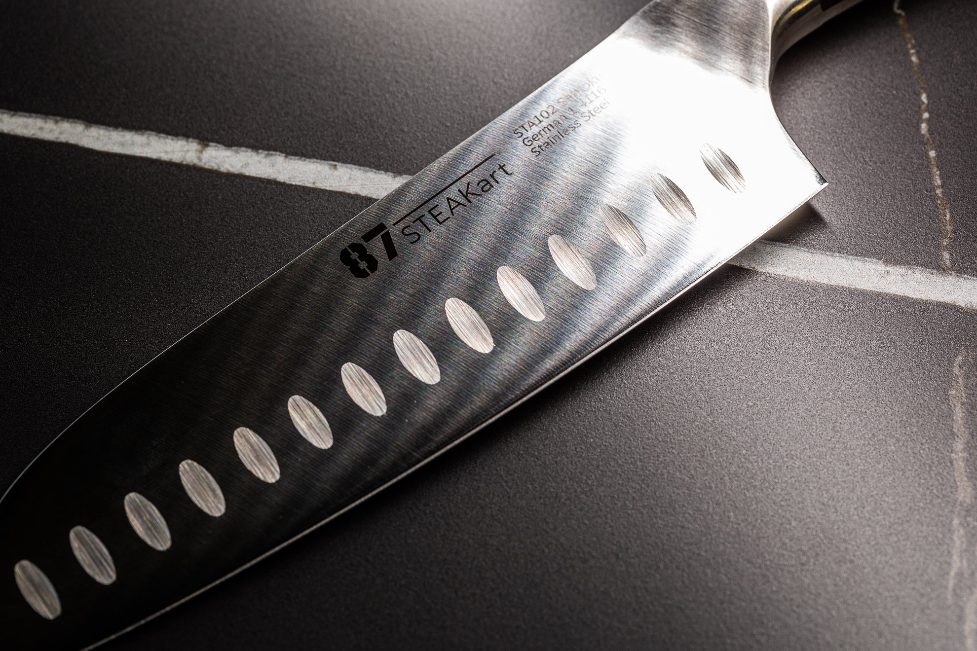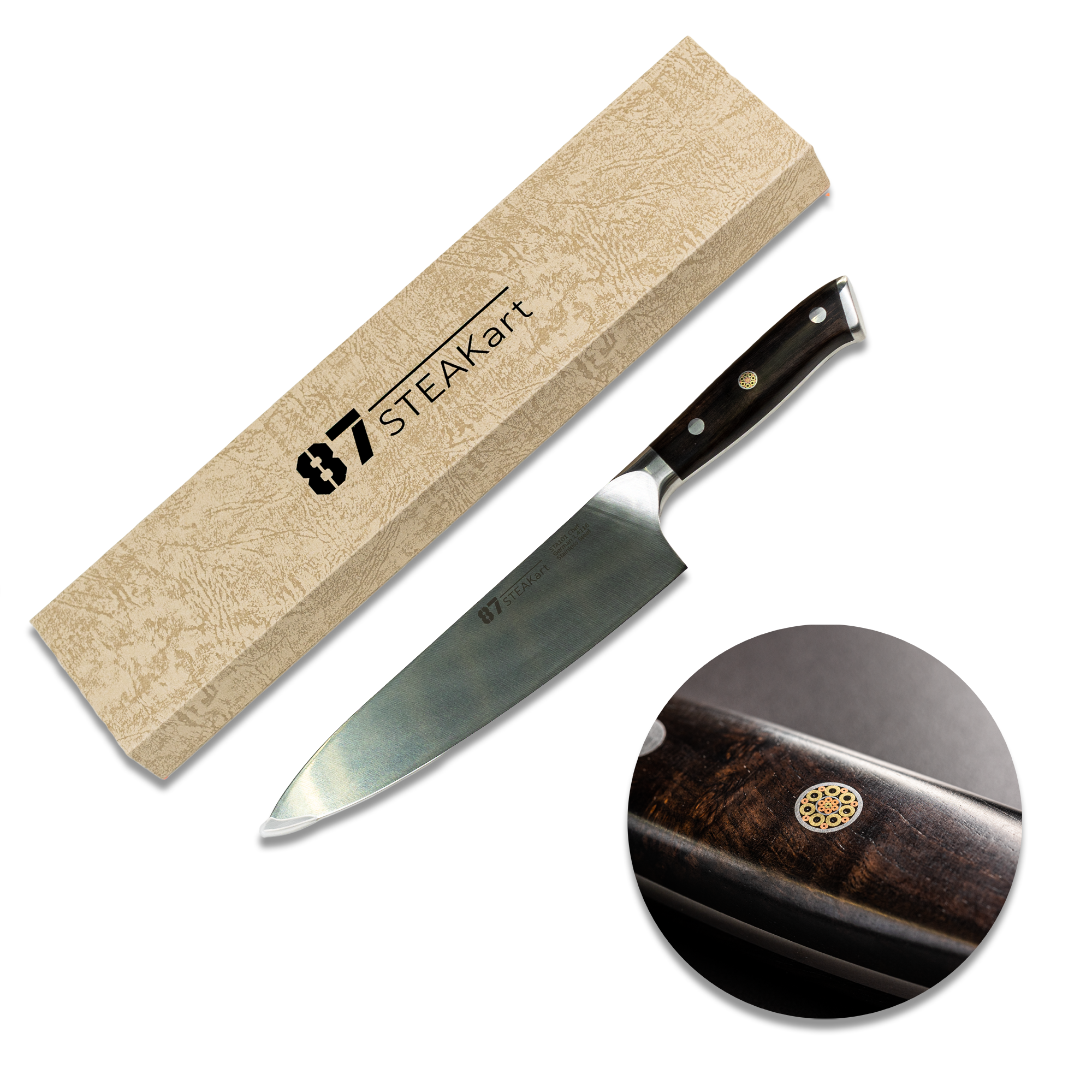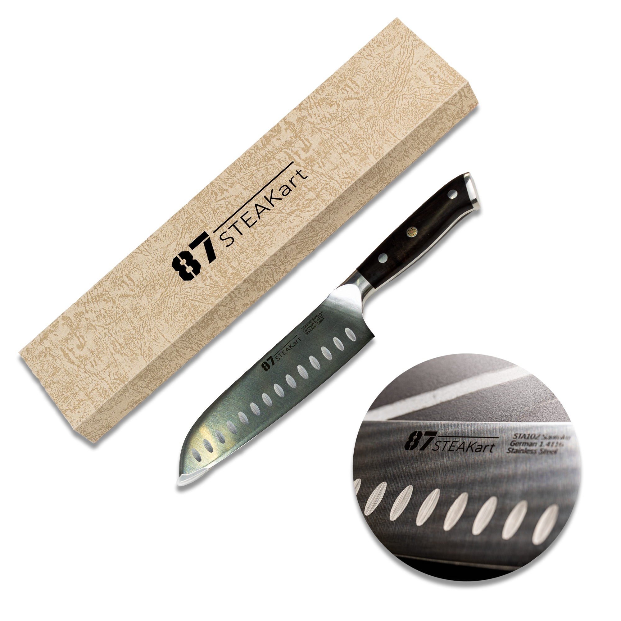 1x 87-STEAKart Messer mit Griff aus Ebenholz (Chef- oder Santokumesser)
