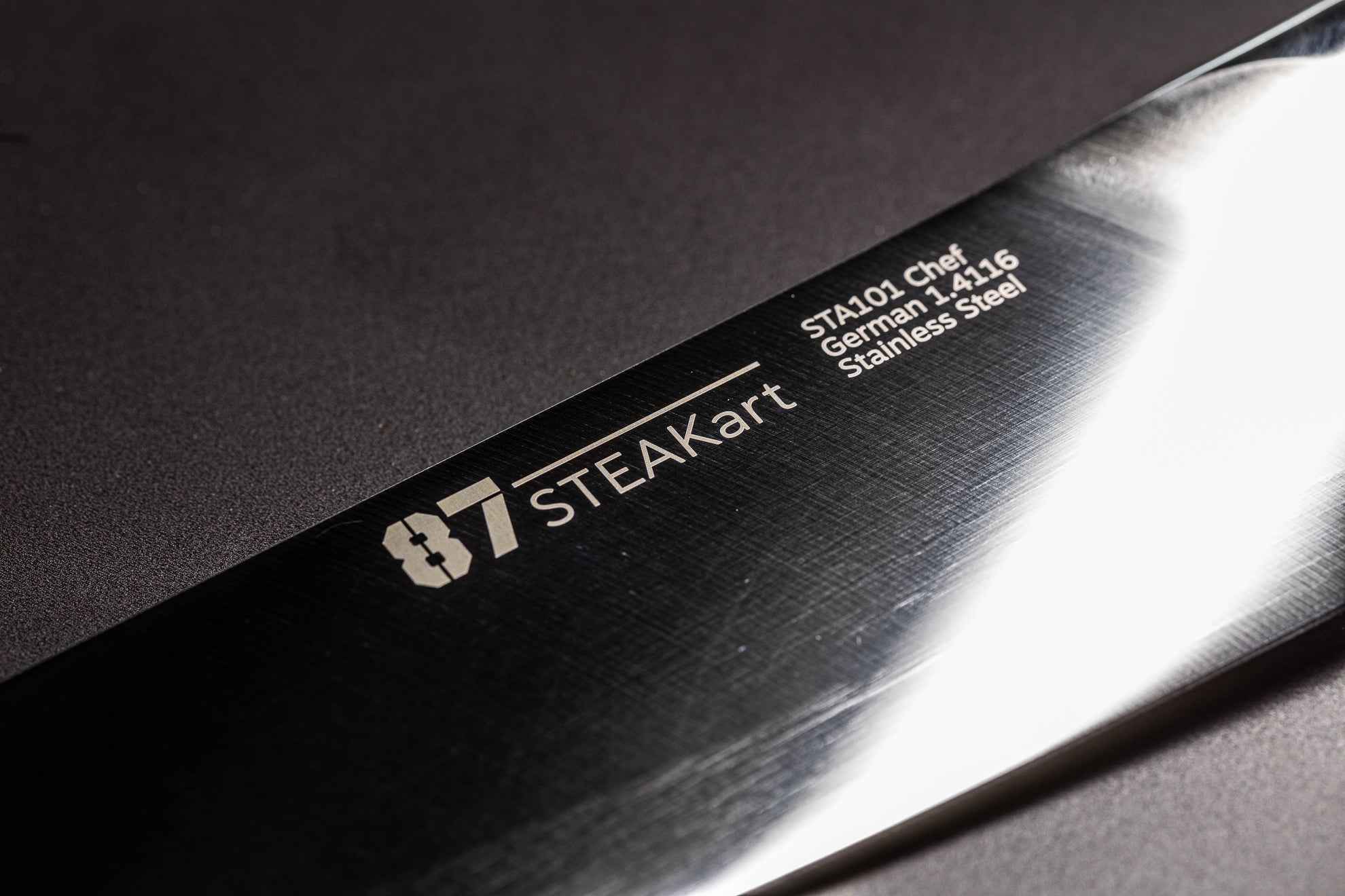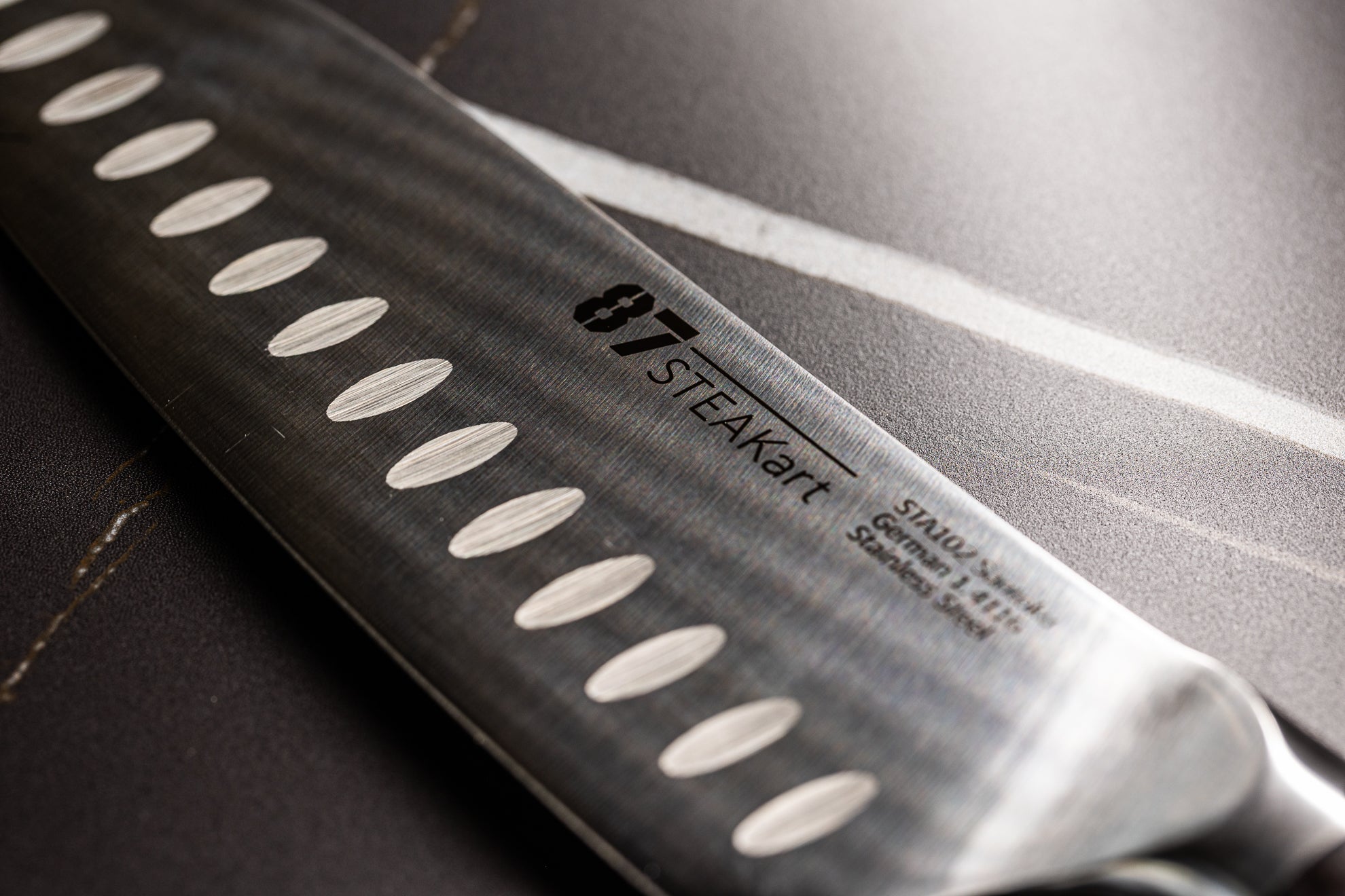 Mit dem hochwertigen Messer von 87-STEAKart hast du einen absoluten Allrounder zur Hand, egal welches Lebensmittel dir in die Quere kommt.