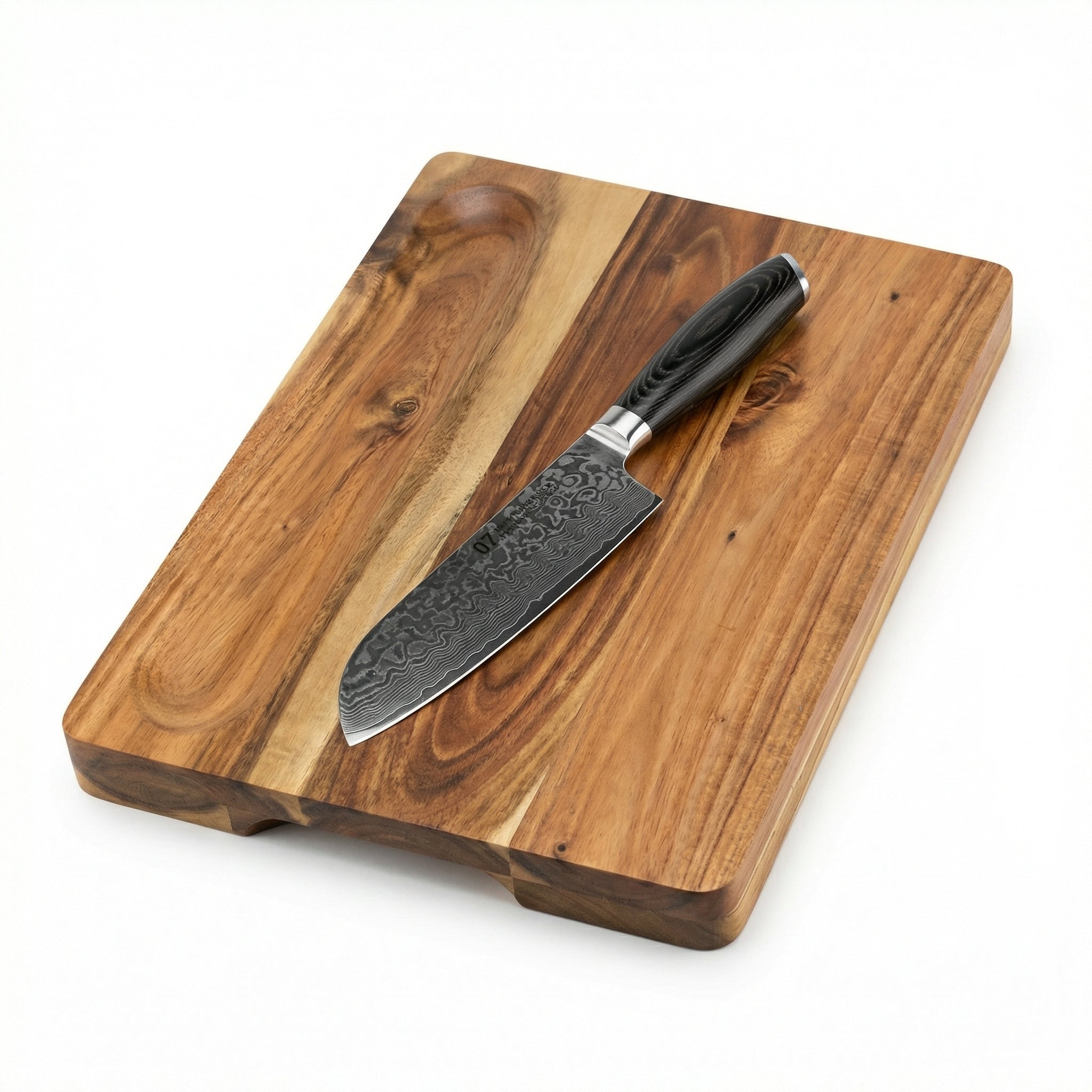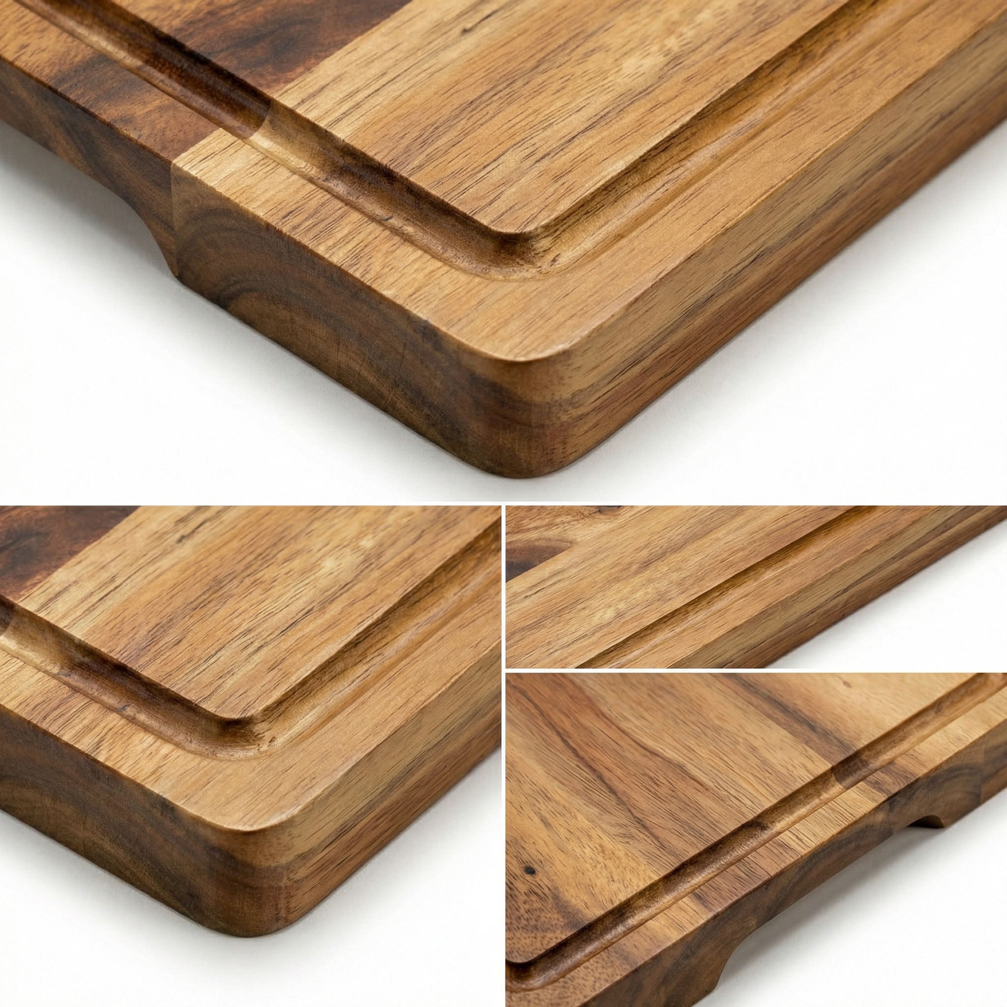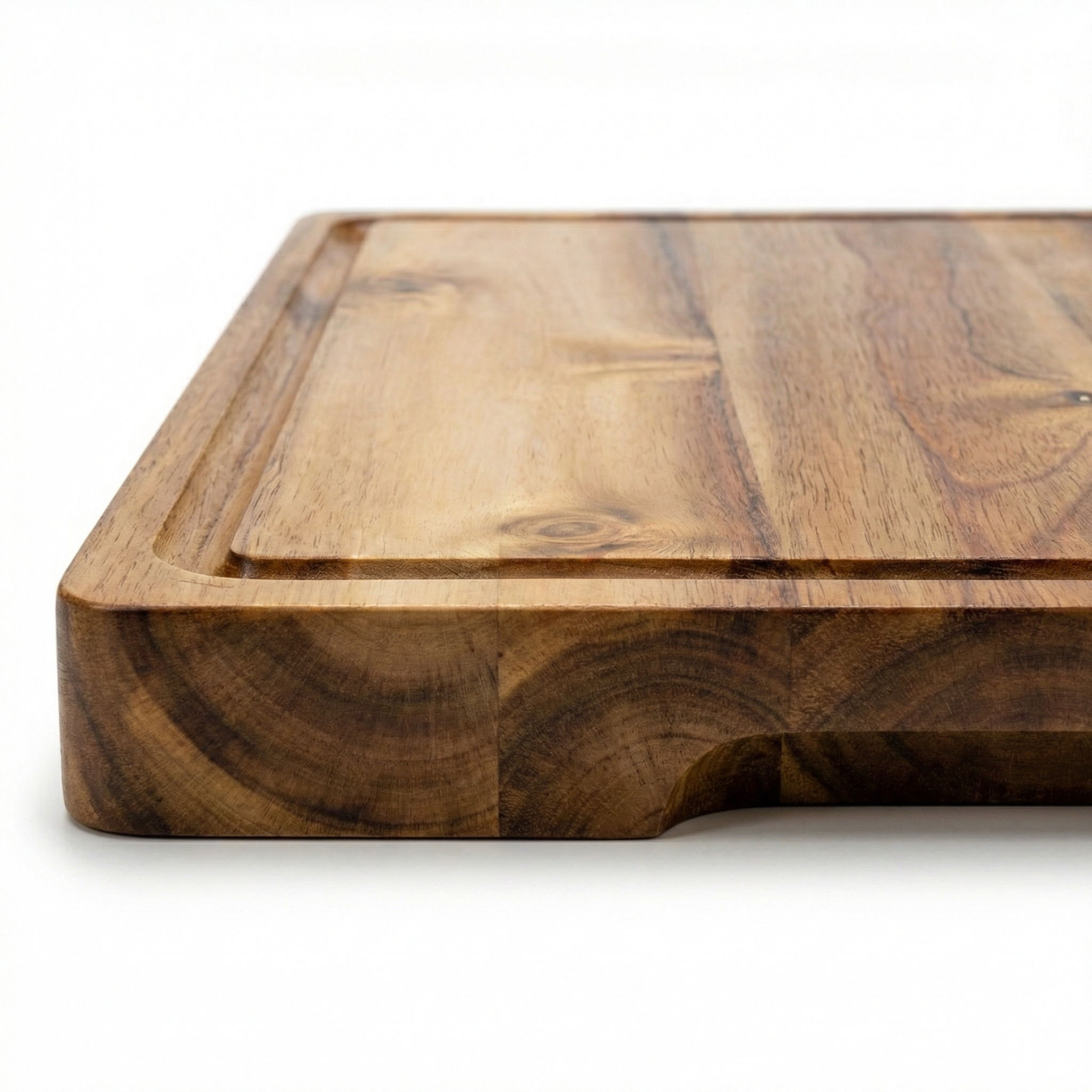 • Massive Qualität: 4 cm dickes Akazienholz – verzieht sich nicht und schont deine Messerklingen.