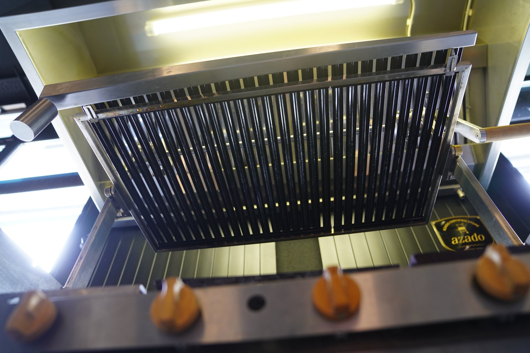 Der azado Rost ist ein typisches Kennzeichen aus der argentinischen Grilltradition. Das V-Profil des Rosts ist einzigartig und ausgeklügelt. Es verhindert, dass Fett in die Glut tropft und dort Stichflammen verursacht. Das Grillgut wird somit vor ungeniessbarem schwarzem Russ und Flammen verschont.